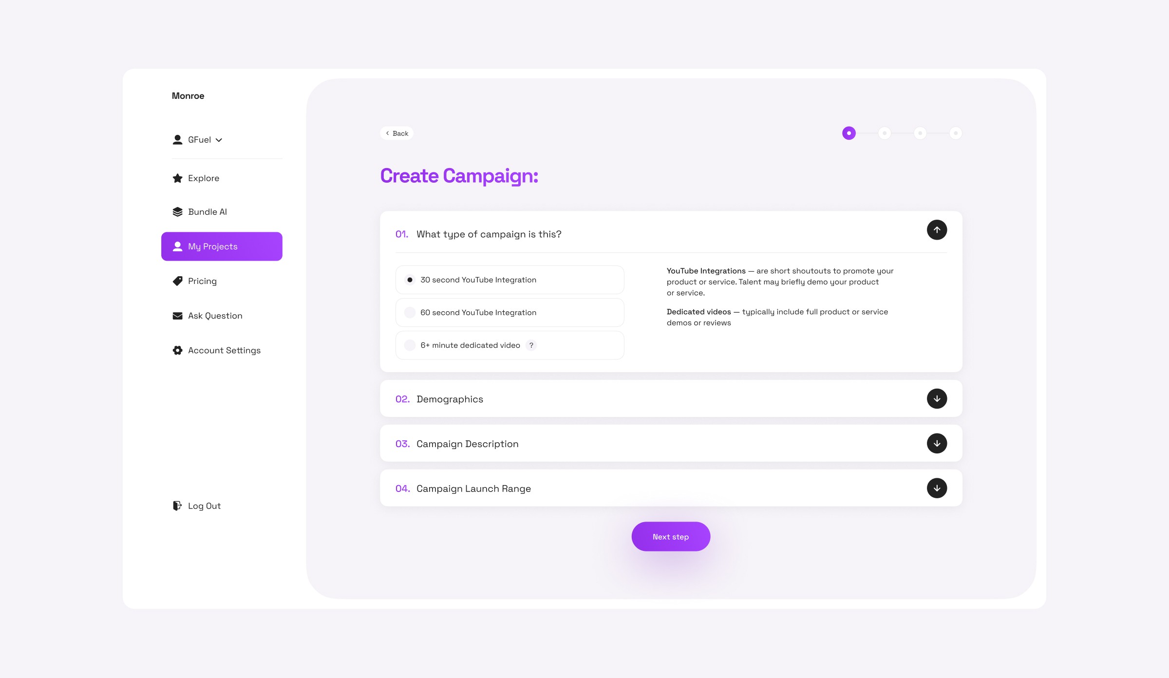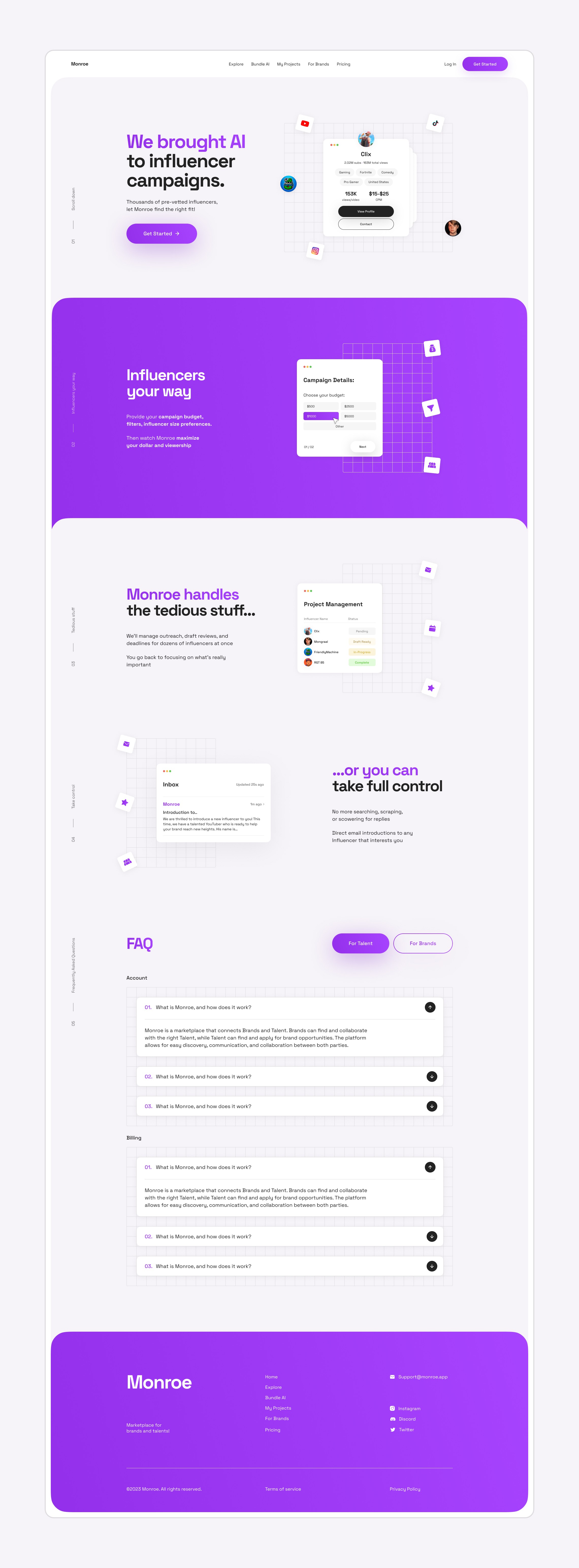 Monroe – is the platform that connects brands to thousands of influencers. The founder, Jonny Netz, approached me as a freelancer to shape the entire product experience, from UX flows to visual identity.